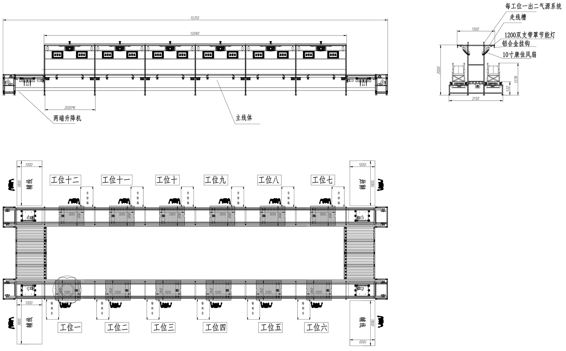 各工位的衔接需要人工运输,孤岛式分布,不能有效整体联机作业。