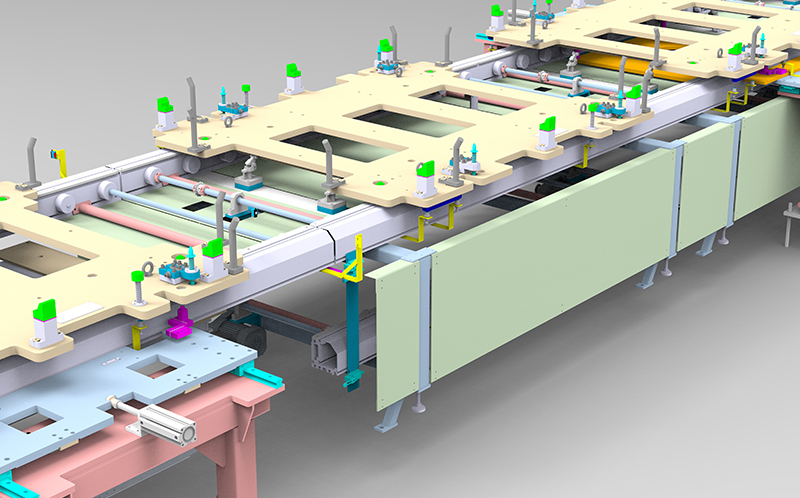 各工位的衔接需要人工运输,孤岛式分布,不能有效整体联机作业。