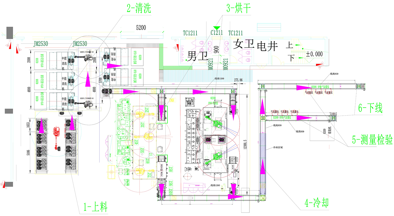 各工位的衔接需要人工运输,孤岛式分布,不能有效整体联机作业。